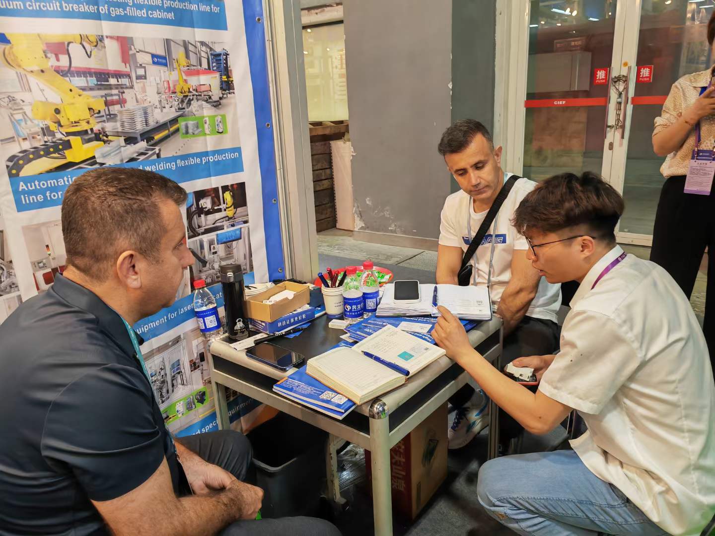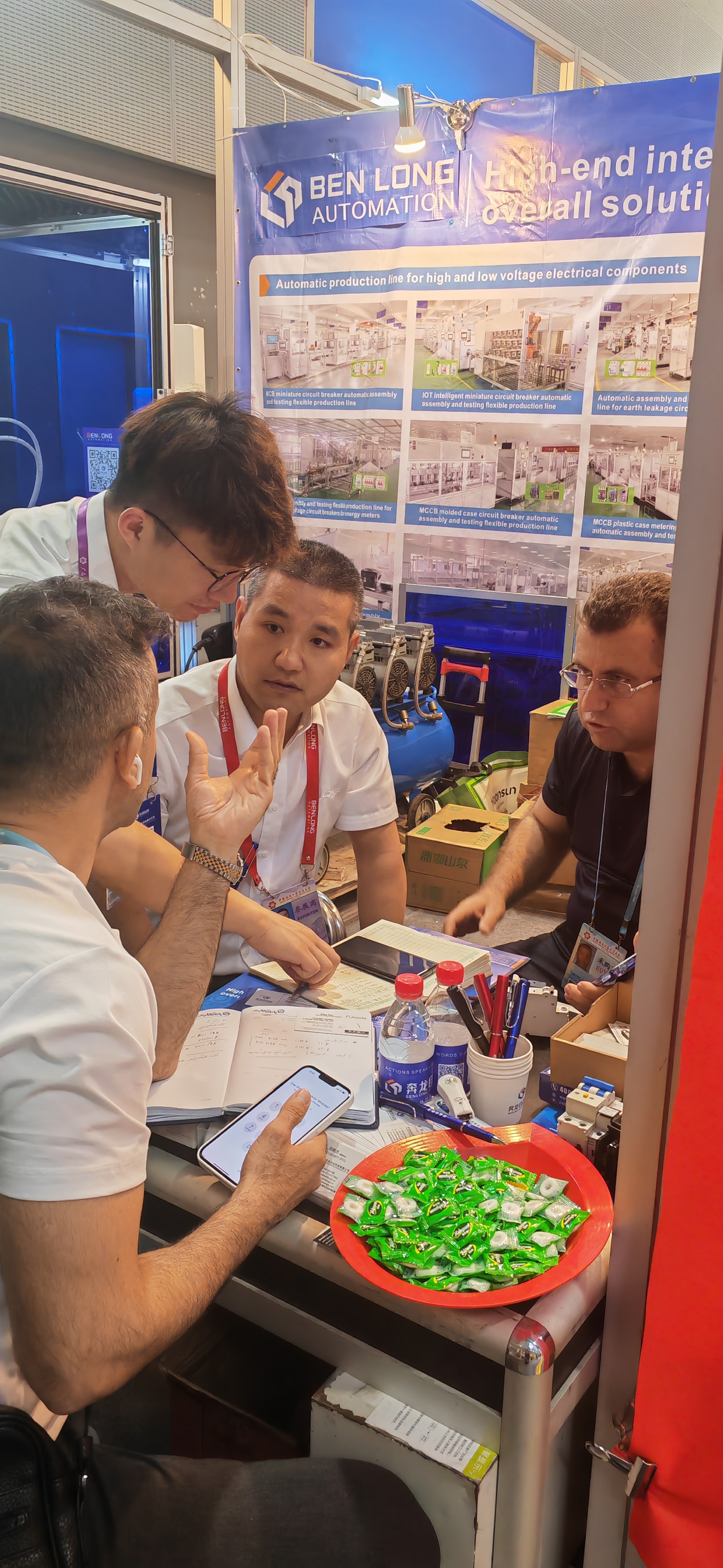 银河官网自动化展位人来人往,络绎不绝。有很多客户前来沟通咨询,现场洽谈业务,合作意向频频达成。