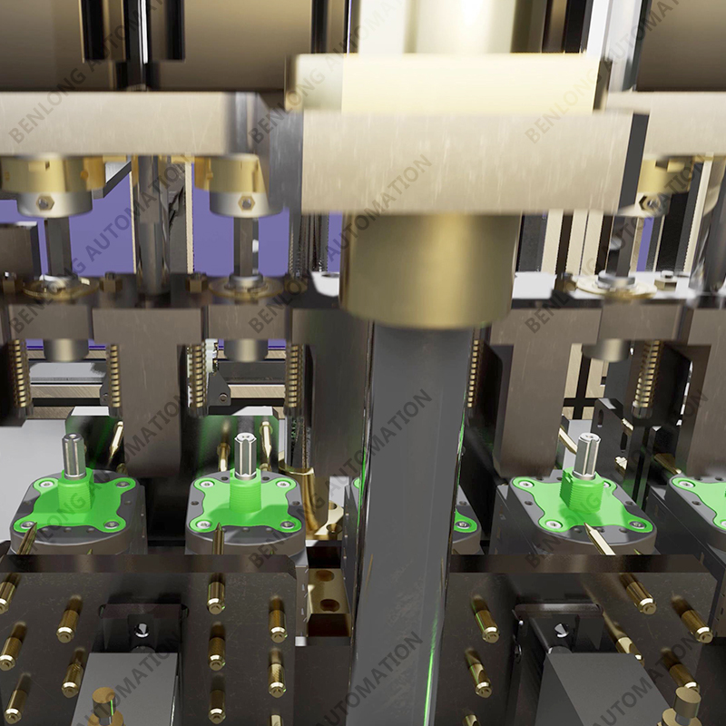 底座组件装配、凸轮组件装配、O型圈装配、面盖装配、上下支座组件装配、组件合体装配、自动退螺丝、超声波焊