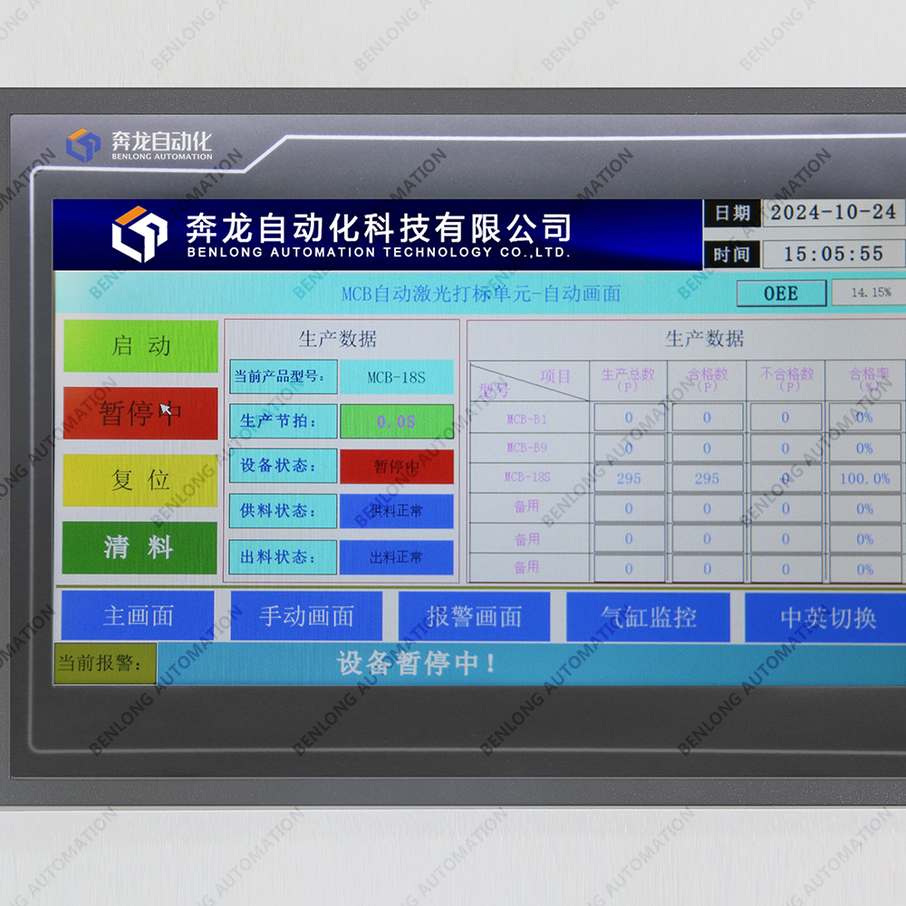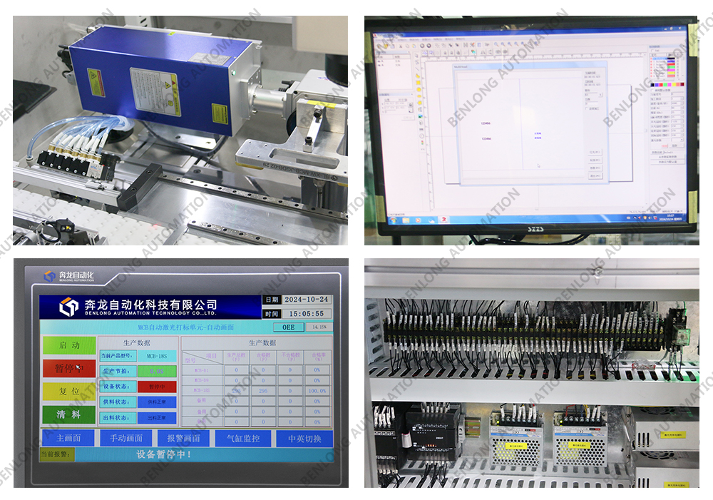 具有自动激光打标二维码或产品ID码、CCD检测、不良品区分、缺料报警、竖立翻转水平、水平翻转竖立等工序的在线监测、实时监控、质量溯源、条码识别、