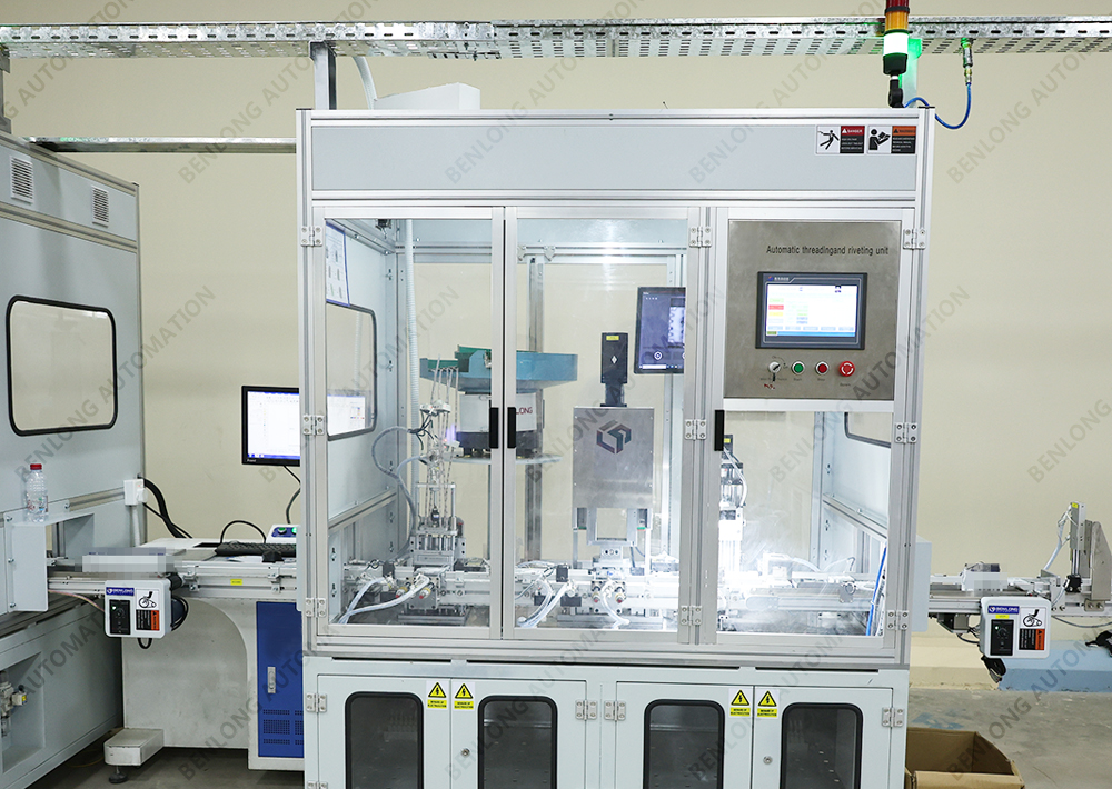 具有自动穿铆钉铆接、CCD检测、不良品区分、缺料报警、翻转竖立等工序的在线监测、实时监控、质量溯源、条码识别、关键元器件寿命监测、数据存储、