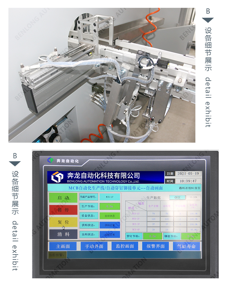 具有自动穿铆钉铆接、CCD检测、不良品区分、缺料报警、翻转竖立等工序的在线监测、实时监控、质量溯源、条码识别、