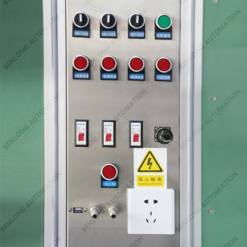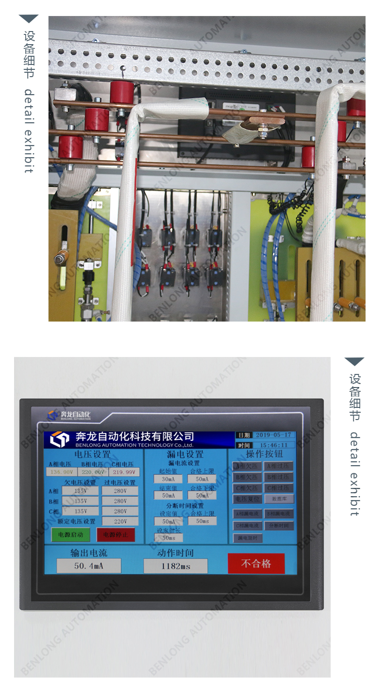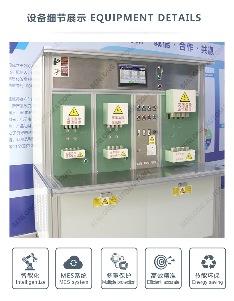 具有工位数可定制、63A~800A兼容、人工上料、条码识别、不良品显示、不良品监控数据、检测时间可任意设定、检测电流可任意设定、间隔时间