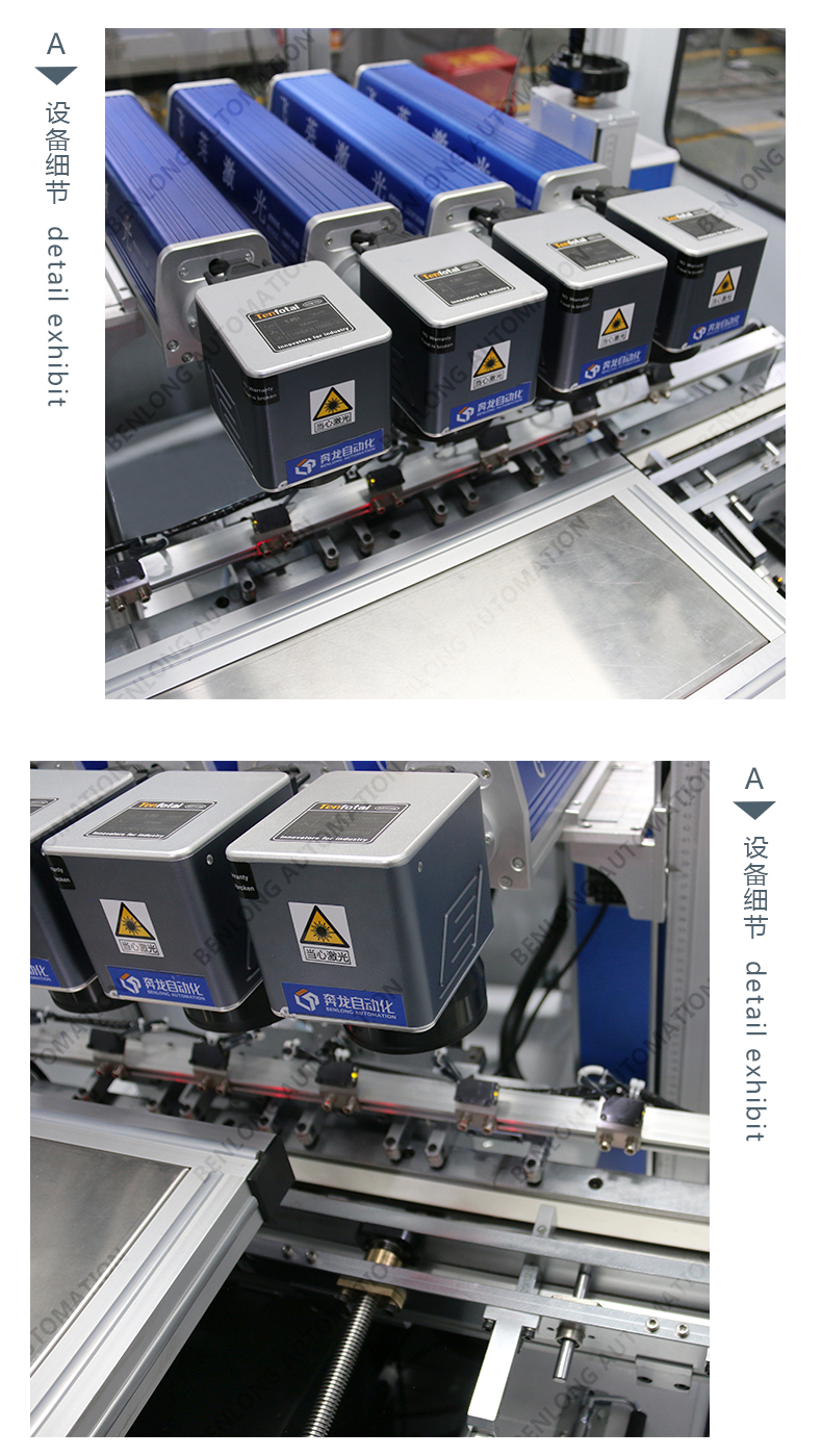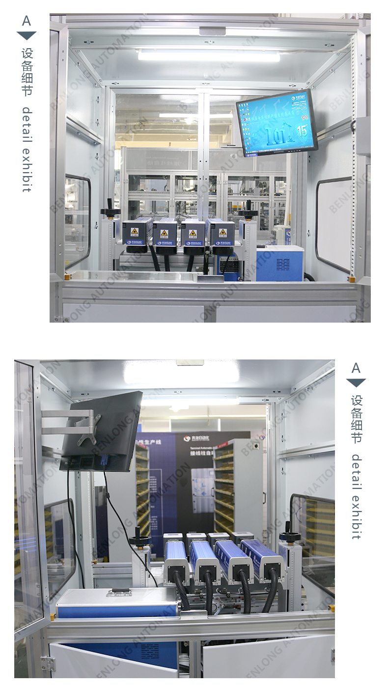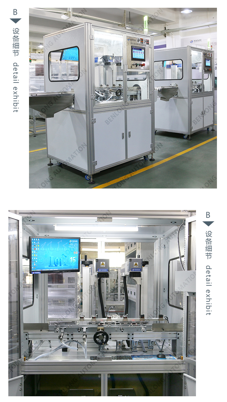 具有自动上料、精密加工、激光打标、自动下料、除尘、不良品区分、缺料报警等工序的在线监测、实时监控、