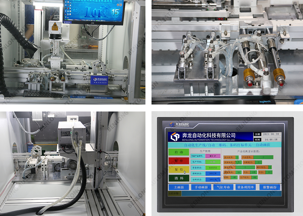 具有自动激光打标产品商标、产品参数、CCD视觉检测、不良品区分、缺料报警、自动旋转等工序的在线监测、
