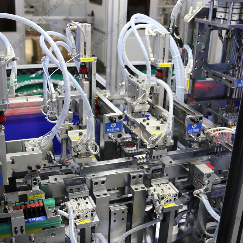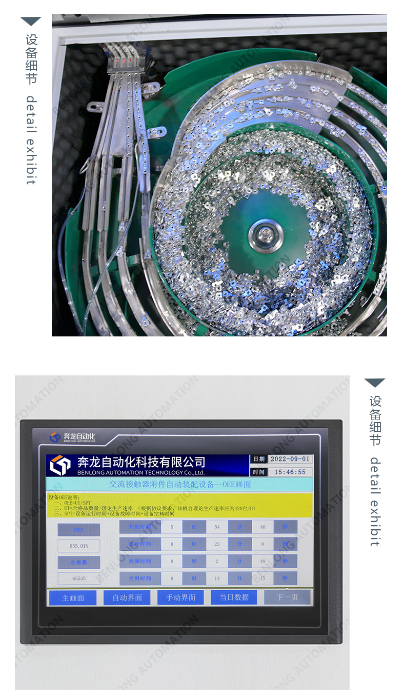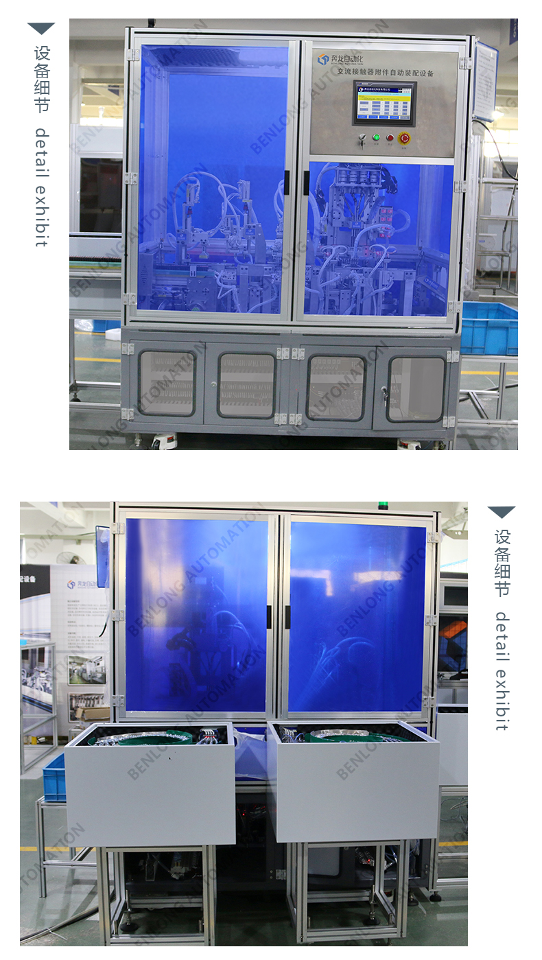 具有自动上料、主触头装配、辅助触头装配、锁瓦片螺丝、通断检测、同步性检测、移印、激光打标、CCD视觉检测、