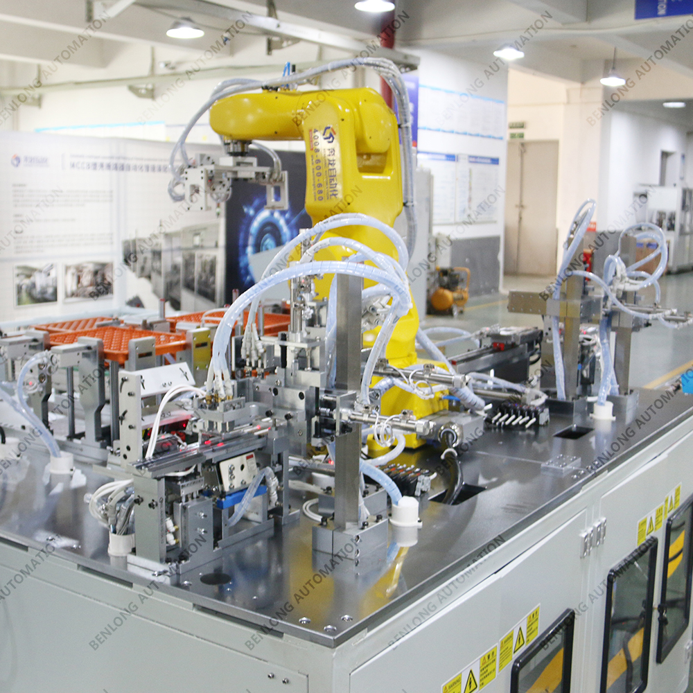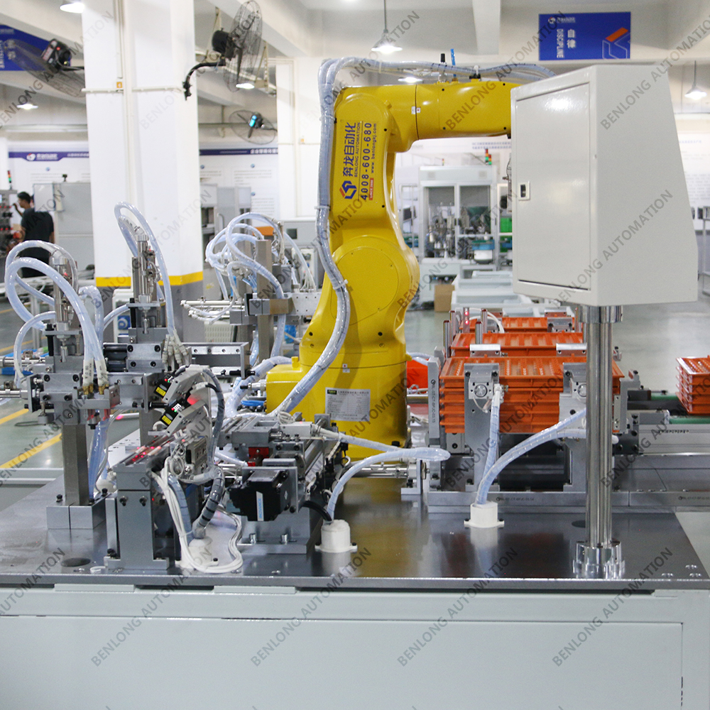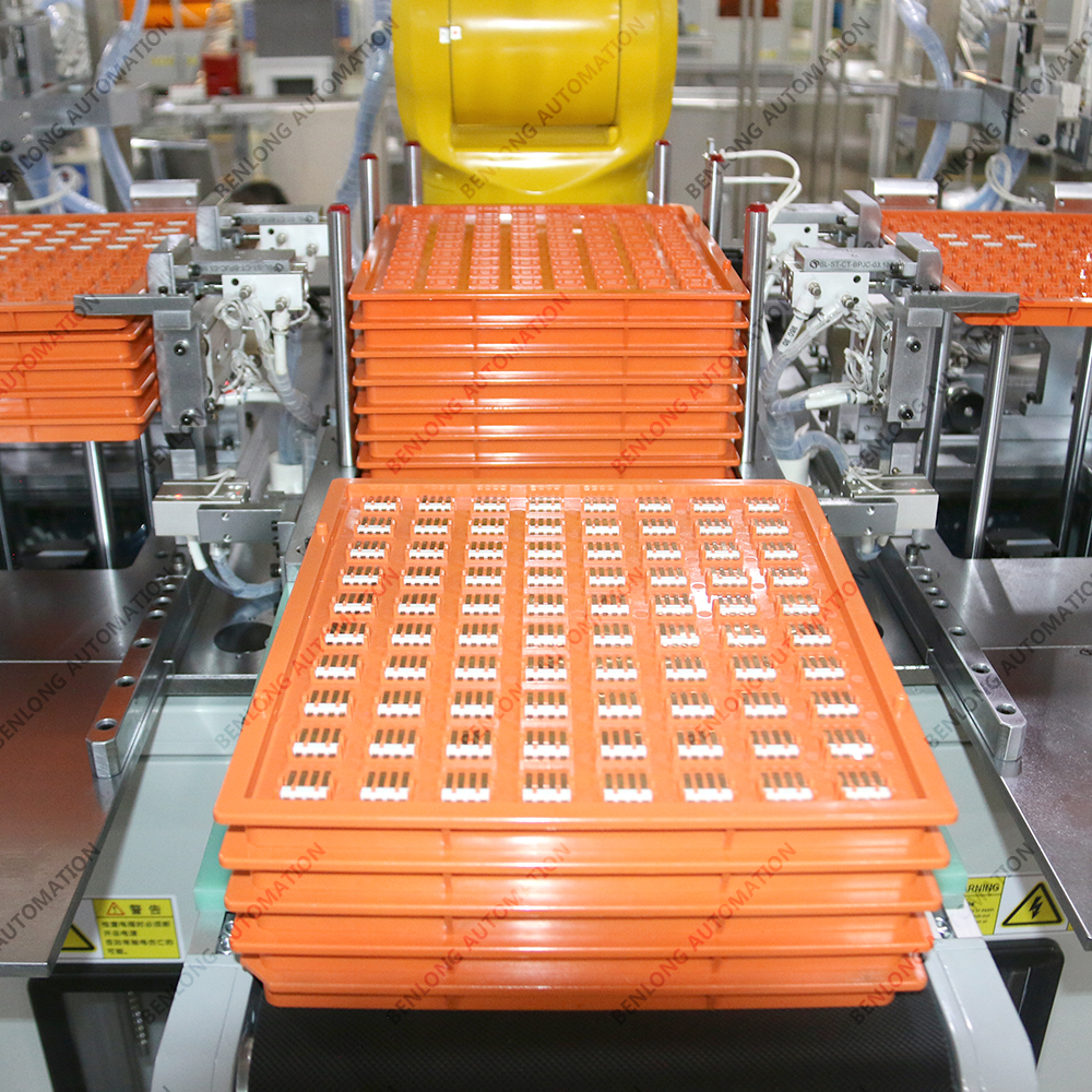具有自动上料、触头装配、CCD视觉检测、自动摆盘、码垛、AGV物流、缺料/满料报警等工序的装配、在线检测、