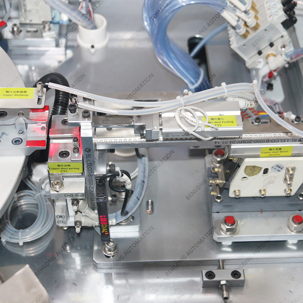 银点上料: 设备通过振动盘、料带或其它送料机构,将微小的银点(通常直径在1mm到5mm之间)自动排列、定向并输送到铆压工位。
