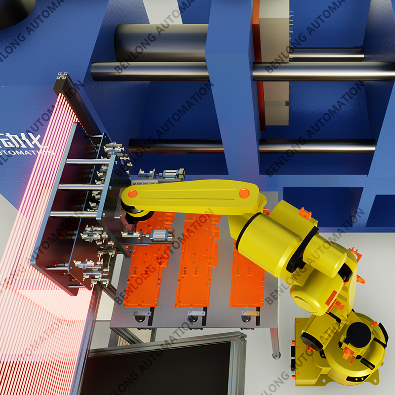 具有自动托盘供料、装配、检测、不良品区分、包装、码垛、AGV物流、缺料报警等工序的装配、在线检测、
