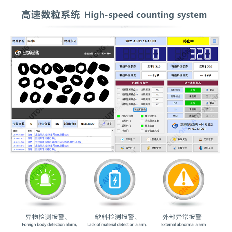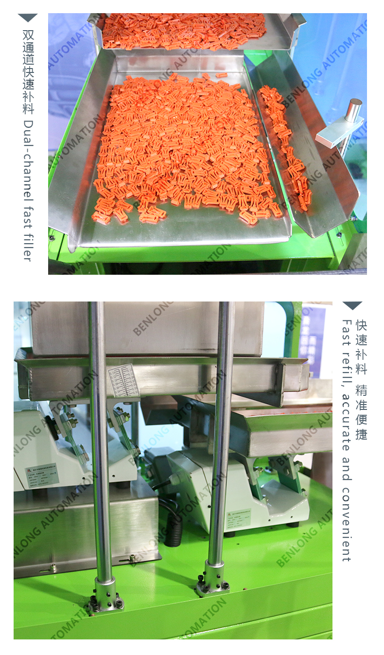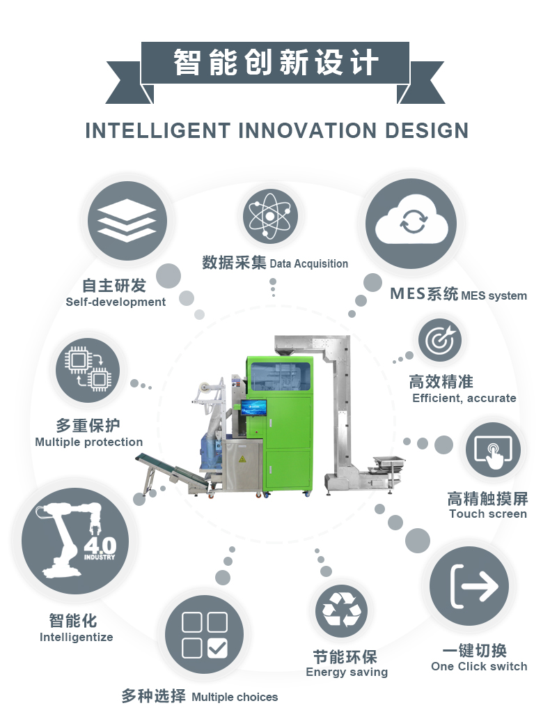 机器视觉数粒,自动放料,自动感应落料,自动封切,自动出包;可单品或者多品种混合投料包装。