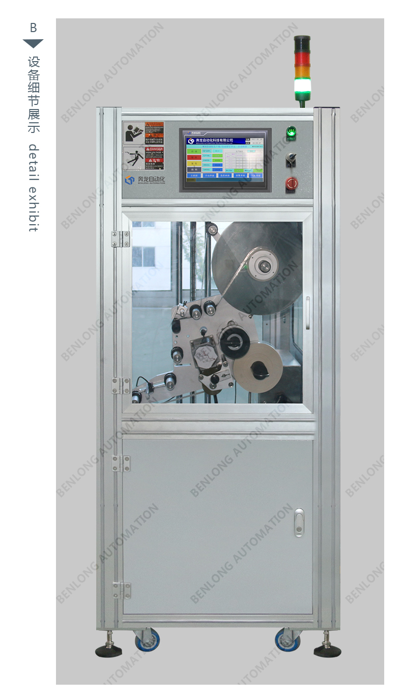具有自动贴标(二维码标签、条形码标签、ID码标签、图案等)、CCD检测、不良品区分、缺料报警、竖立翻转水平、