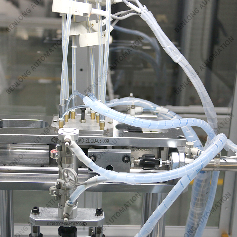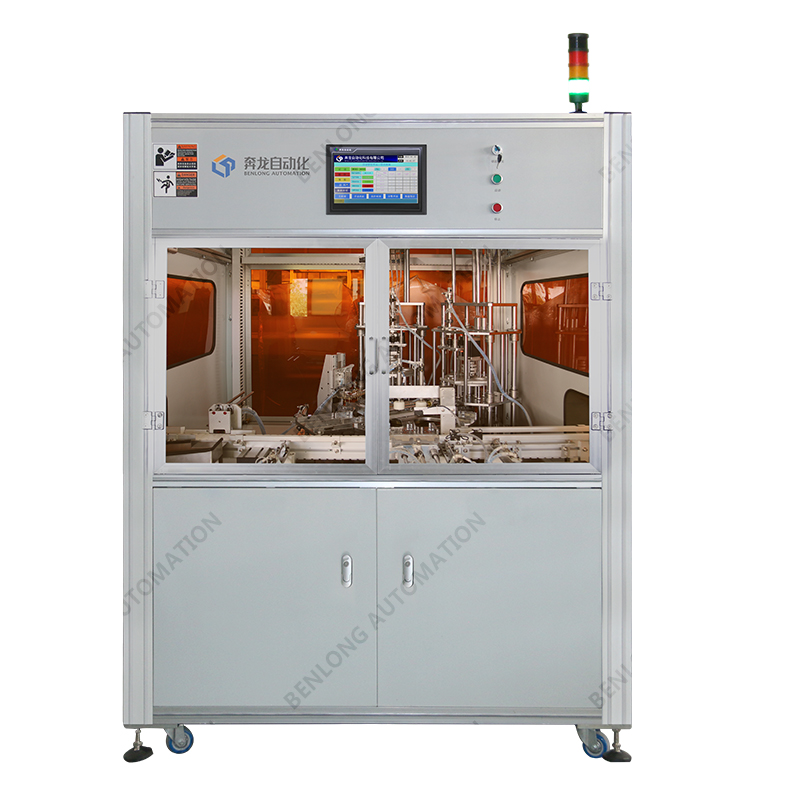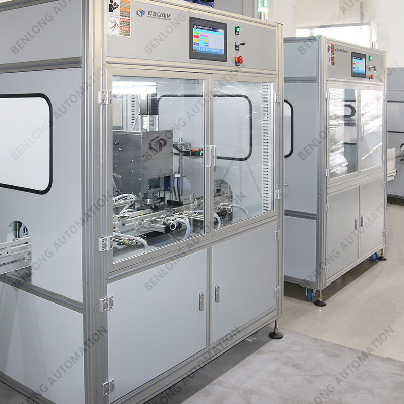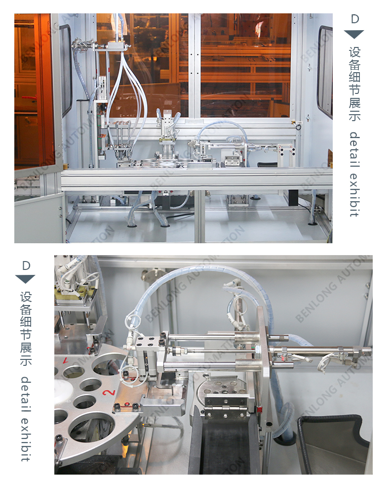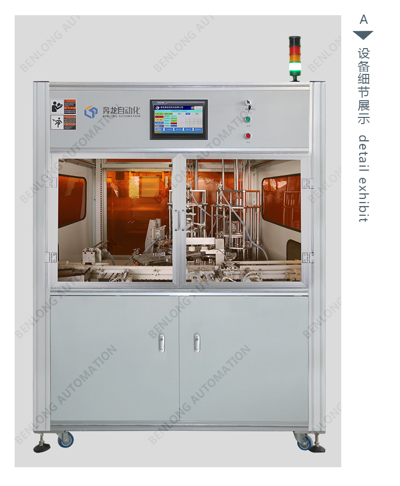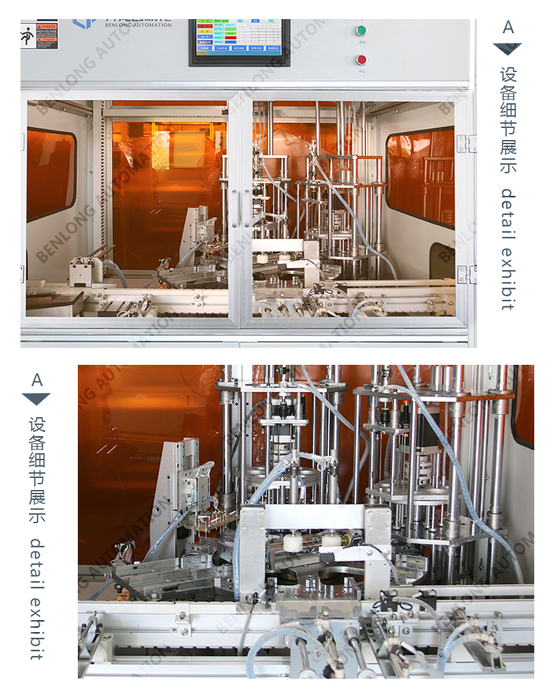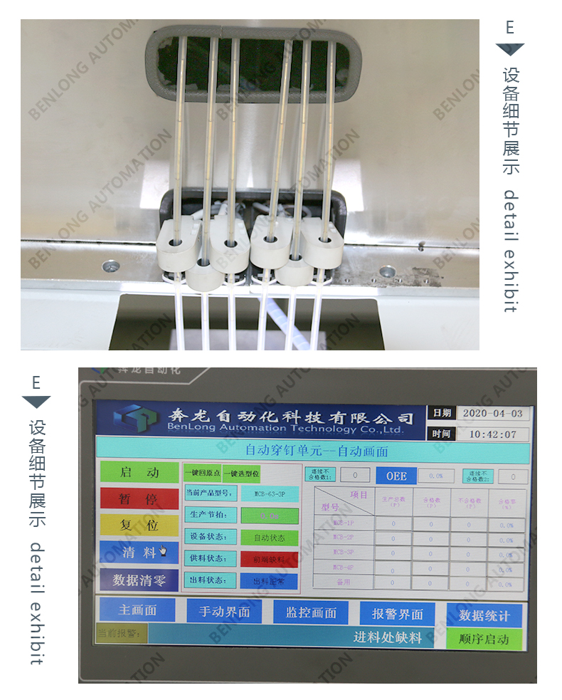 具有自动穿铆钉、CCD检测、不良品区分、缺料报警、翻转竖立等工序的在线监测、实时监控、质量溯源、条码识别、关键元器件寿命监测、数据存储、