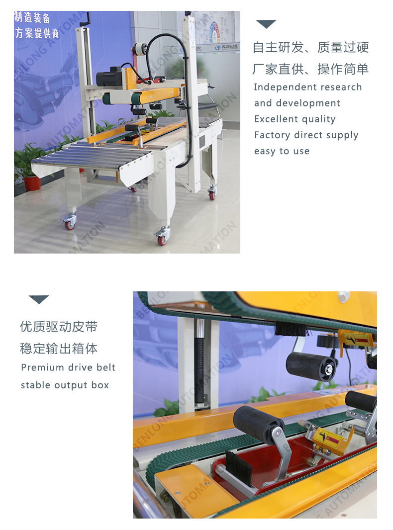 • 漏电断路器上下驱动胶带封箱机