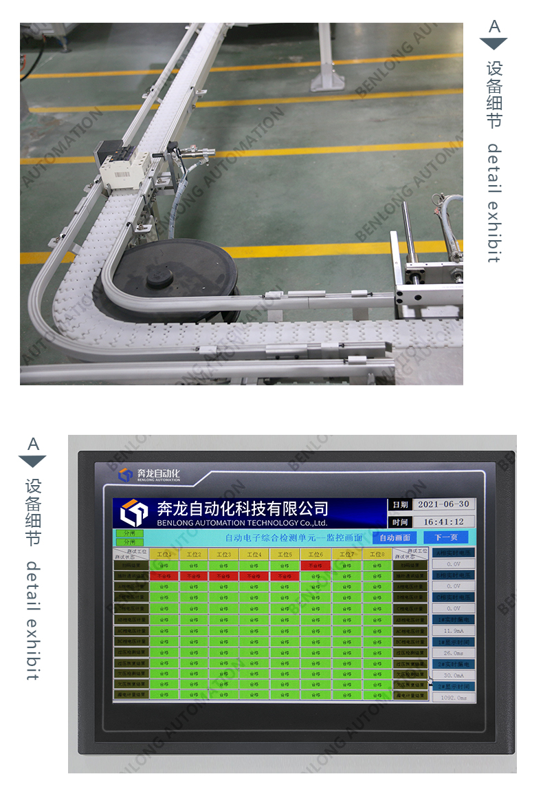 电压相位、电流相位、功率相位、功率因数、频率、功耗、温度校准等工序的装配、不良品区分、缺料报警、不良品回流返工等工序的在线监测、