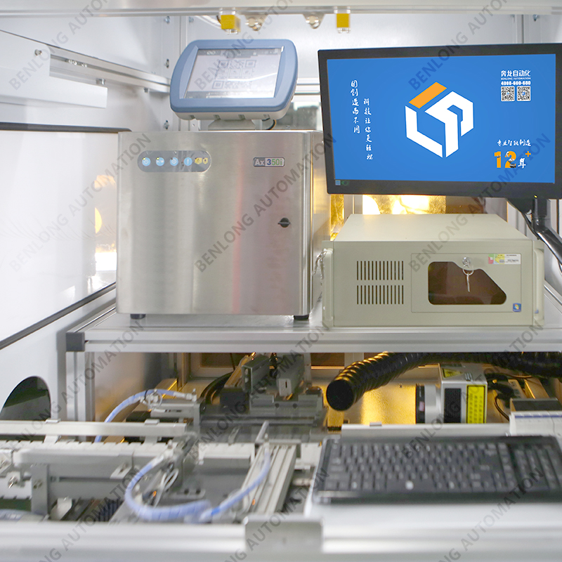 具有自动激光打标二维码、喷条形码或产品ID码、CCD检测、不良品区分、缺料报警、竖立翻转水平、水平翻转竖立等工序的在线监测、