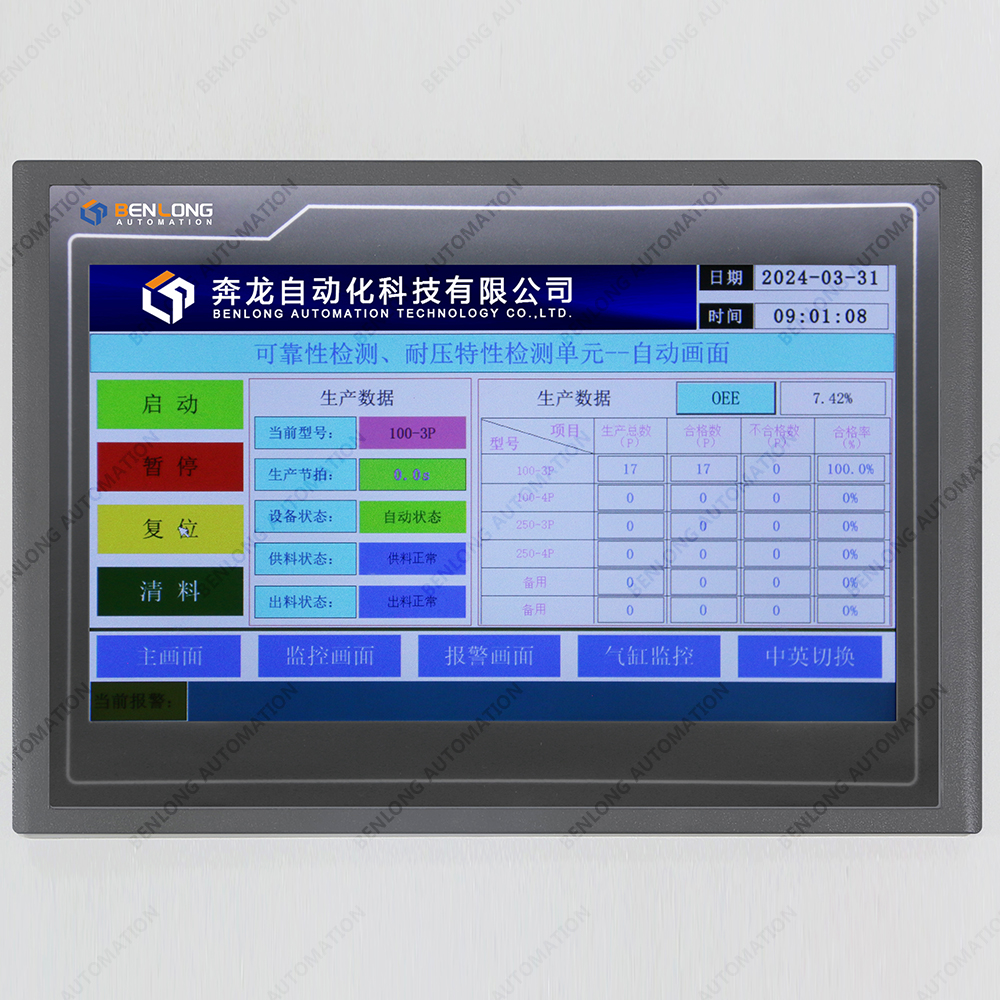具有自动可靠性、耐高压检测、不良品区分、下料、缺料/满料报警等工序的在线监测、实时监控、质量溯源、条码识别、