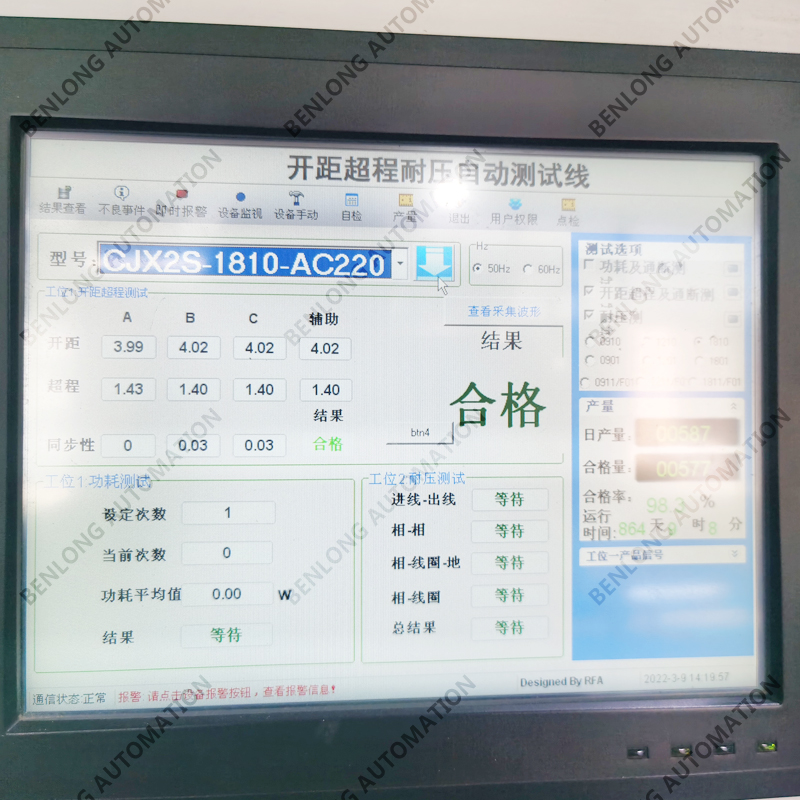 前倾吸合、后倾释放、开距、超程、总程、同步性、人工装配前后挡件、移印、激光打标、CCD视觉检测、贴标、喷码、装袋、
