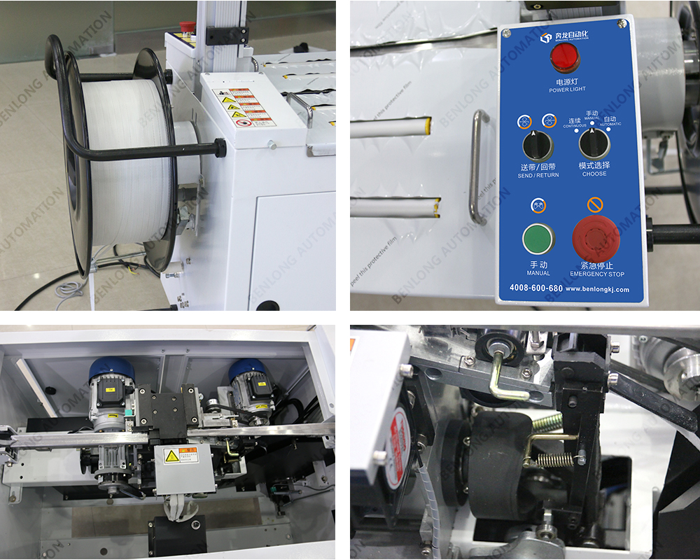 人工放料或其他包装设备出料口自动放料,自动捆扎。 关于售后