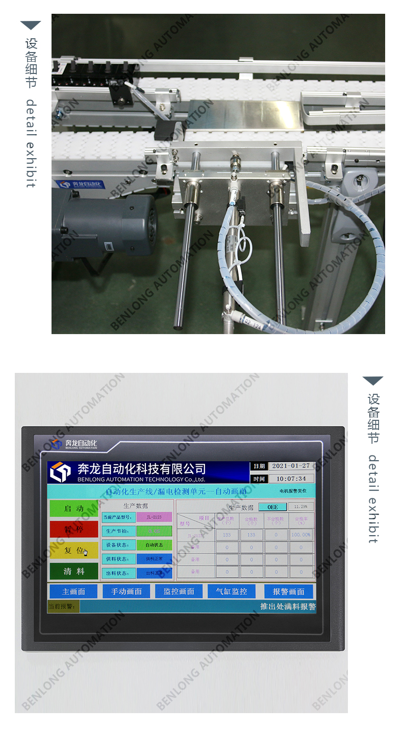 耐压、移印、剩余电流检测、移印、激光打标、贴标、包装、码垛、AGV物流、缺料报警等工序的装配、在线检测、