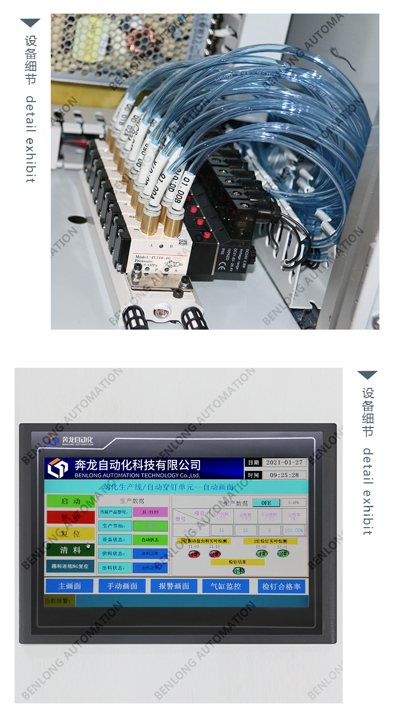 具有自动穿铆钉、CCD检测、不良品区分、缺料报警、翻转竖立等工序的在线监测、实时监控、质量溯源、条码识别、