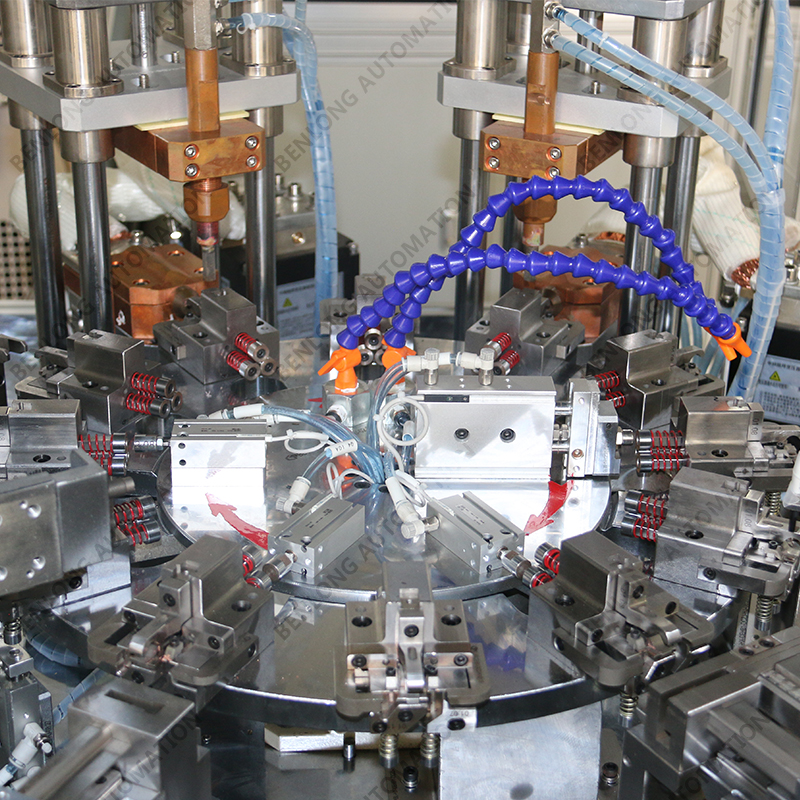 具有产品机器人自动上料、装配、多极拼装、喷码/激光打二维码、穿钉、铆接、瞬时、机器人+延时检测、冷却、机器人