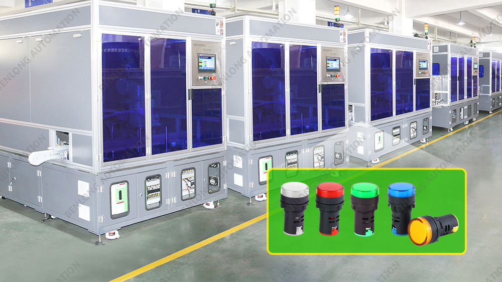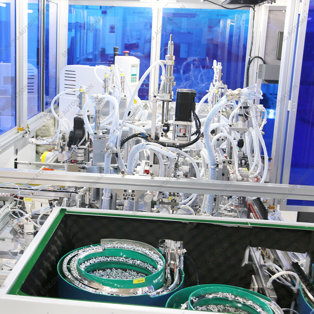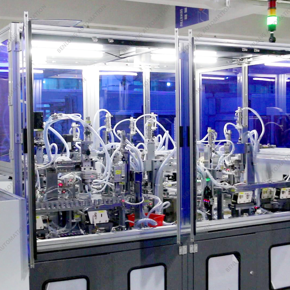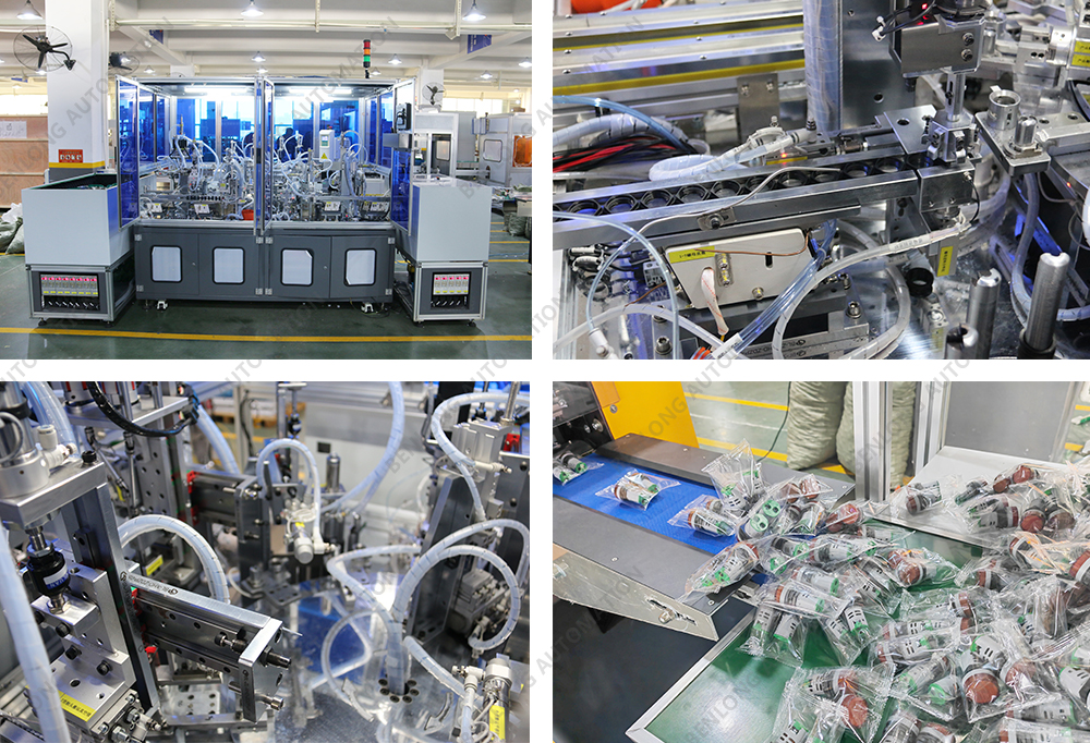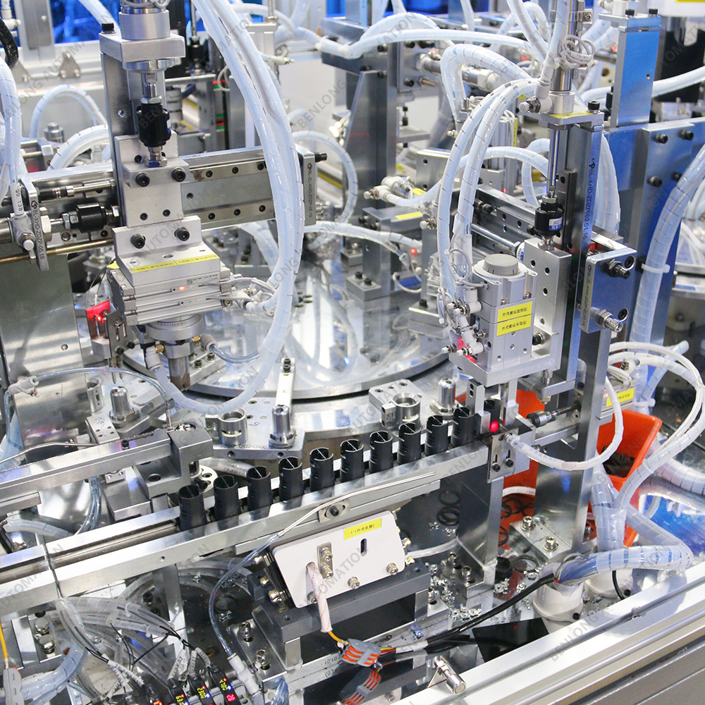 具有产品自动上料、锡焊、装帽盖、装胶圈、装塑料螺母、锁螺丝、移印、激光标刻、检测、合格不合格区分、