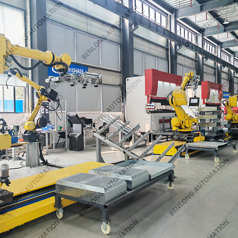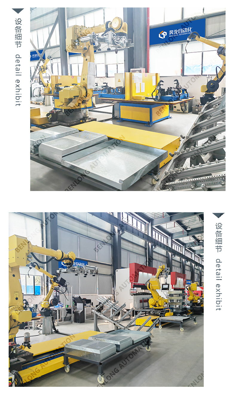 冲压焊接生产线:根据客户特定要求产能、节拍、实现自动化上下料切割、冲压、折弯、焊接等生产程序,