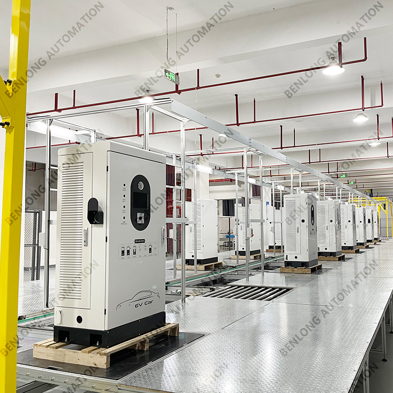 I. 充电桩流水线输送线体和各专机设计先进合理,具有较高的自动化程度,物流符合工艺路线要求,生产线不会发生拥挤堵塞现象;线体结构牢固稳定,外观格调统一。